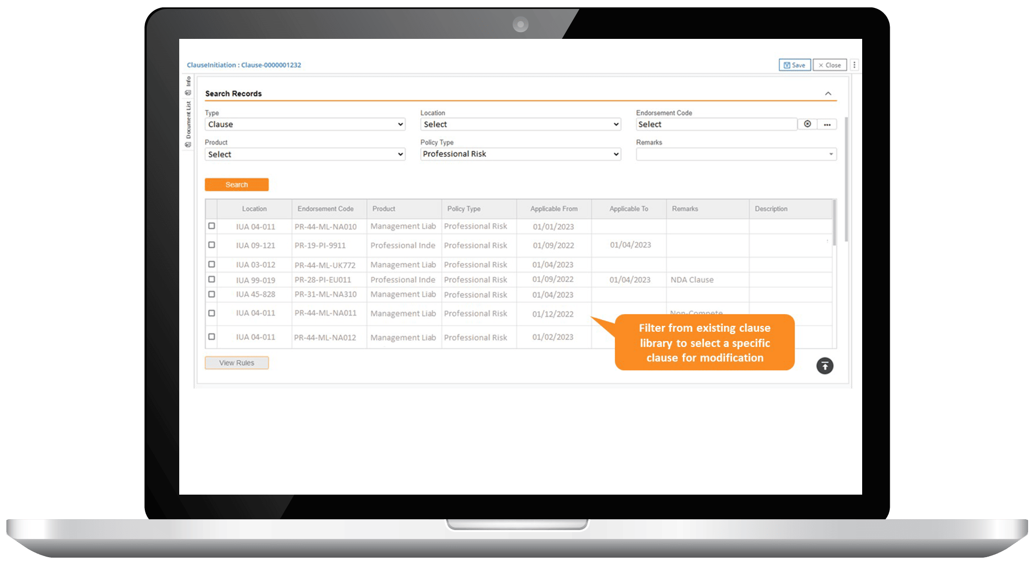 Streamline the policy wording, binding, and generation process to minimize losses and penalties by deftly managing complex policies and clause updates. Enable back office and underwriting teams with self-service access to the wording library. Improve process efficiency with features such as template libraries, clause libraries, rule definition, and strong integration capabilities with core systems.