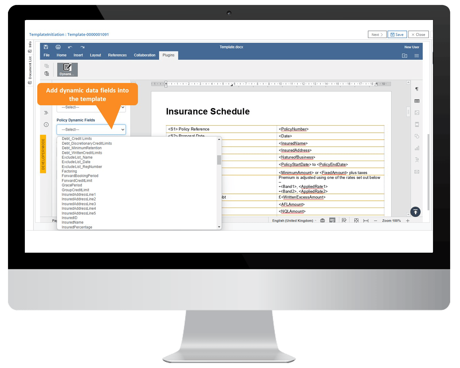 Streamline the policy wording, binding, and generation process to minimize losses and penalties by deftly managing complex policies and clause updates. Enable back office and underwriting teams with self-service access to the wording library. Improve process efficiency with features such as template libraries, clause libraries, rule definition, and strong integration capabilities with core systems.